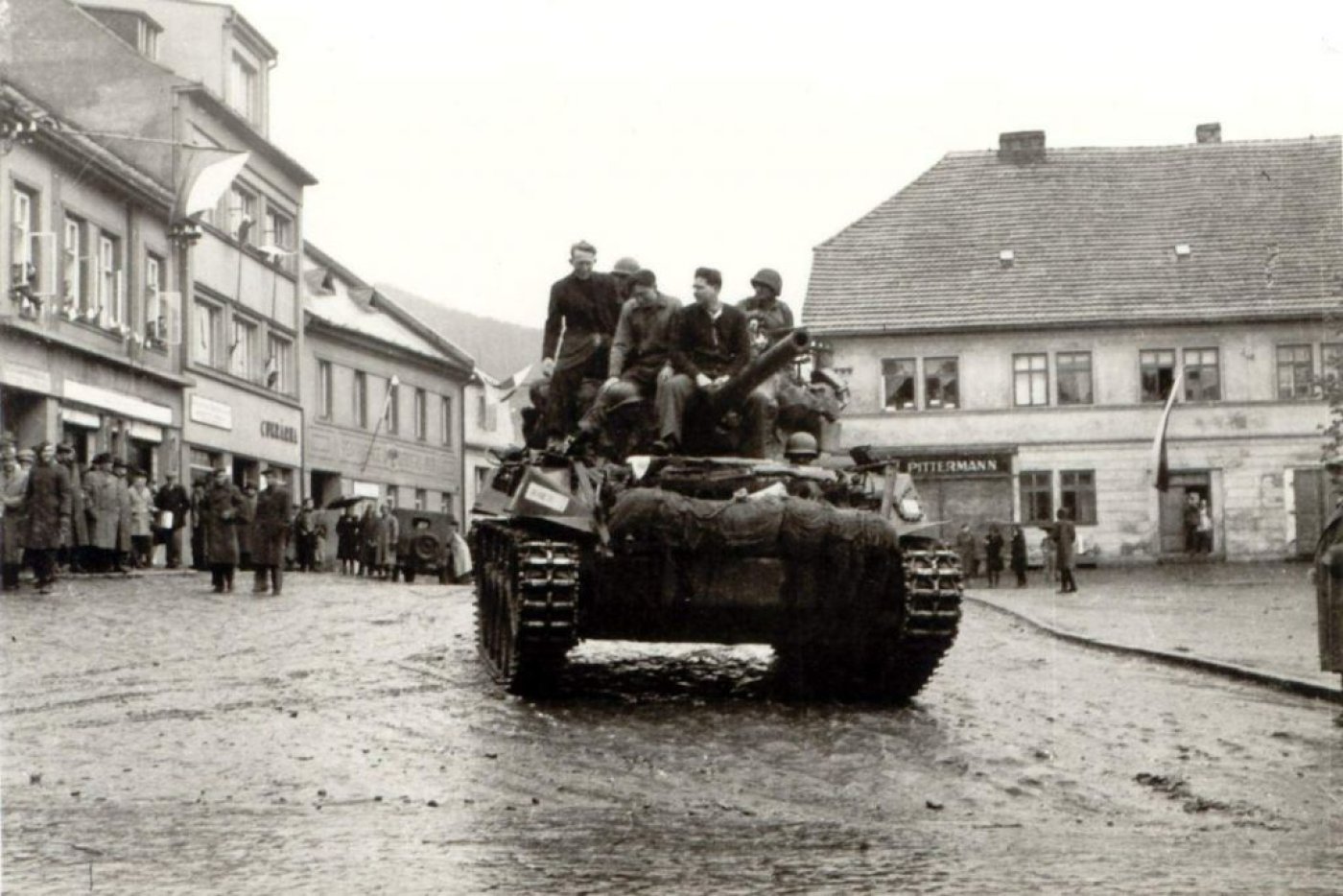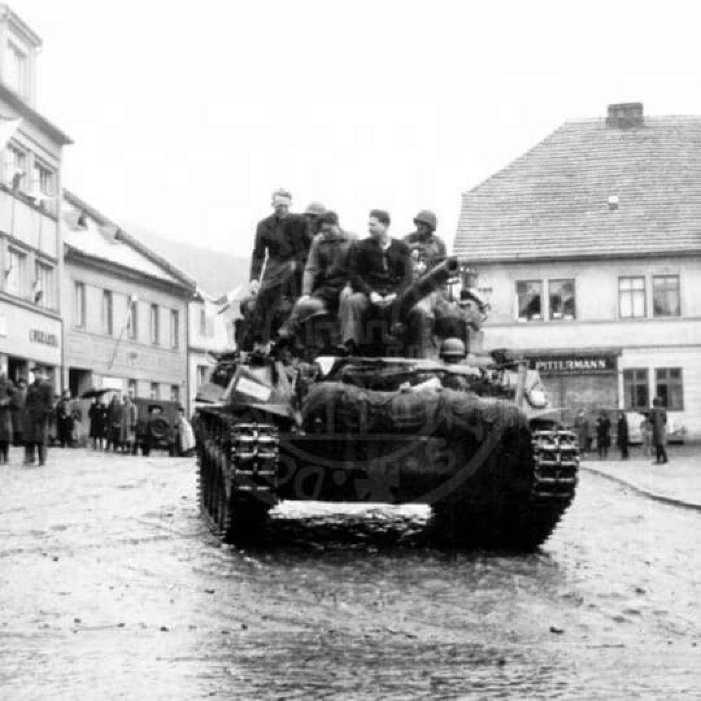 První americký tank přijel do města 4. května kolem 18 hodiny, aby obhlédl situaci, a po krátkém zdržení se vrátil zpět do Všerub. V posledních hodinách 5. května 1945 přijely první vojenské jednotky a místní je nadšeně vítali. Americké vojsko zůstalo ve městě až do října 1945.