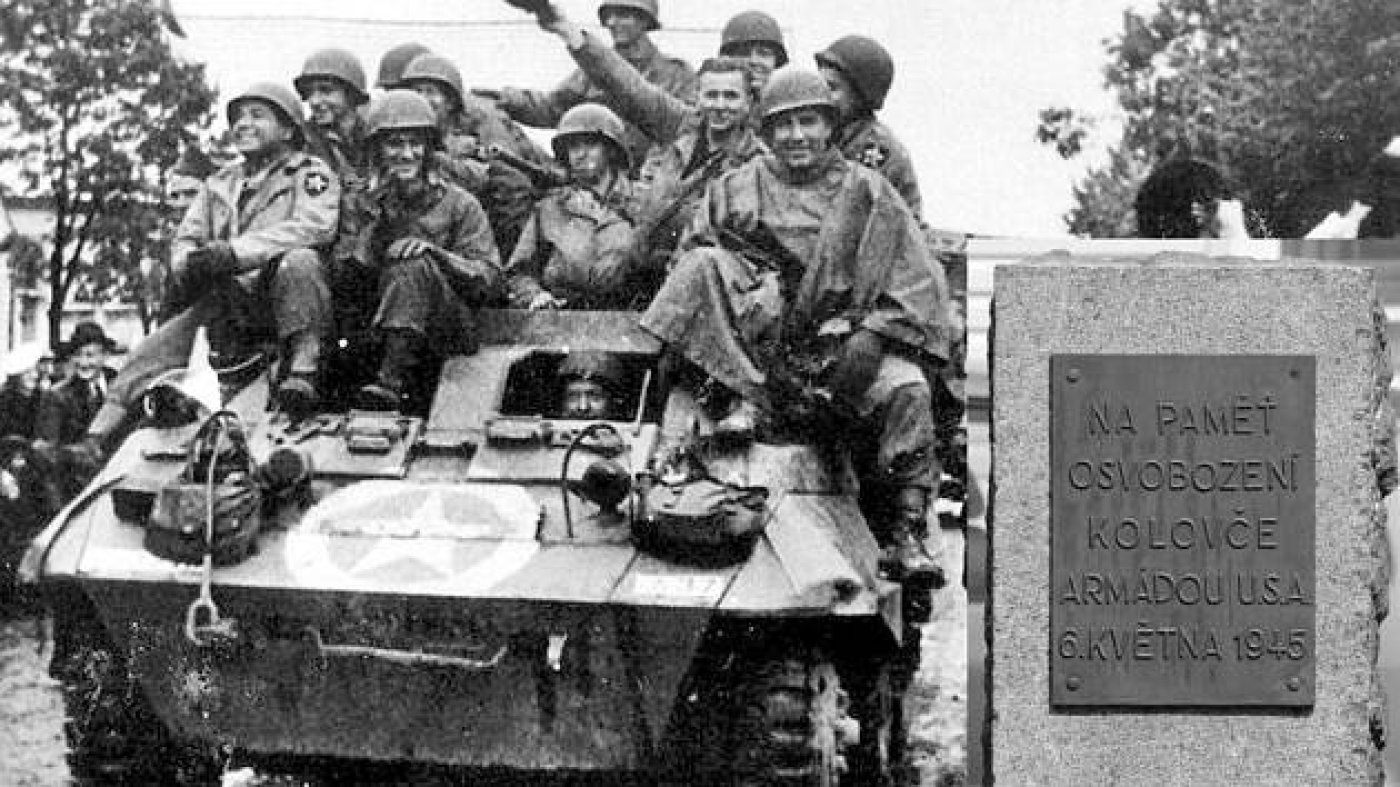 Rok 1945 – v neděli 6. května v 9 hodin dopoledne vjela do Kolovče vojska USA a dále pokračovala k Plzni. Byli to vojáci 3. armády pátého sboru druhé divize. V obci zůstal oddíl dělostřelecké baterie se šesti houfnicemi a družstvo se dvěma letadly typu Pipper, a to na lukách pod hřbitovem. Další vojáci byli ubytováni po domech a zůstali zde do 13. října 1945.