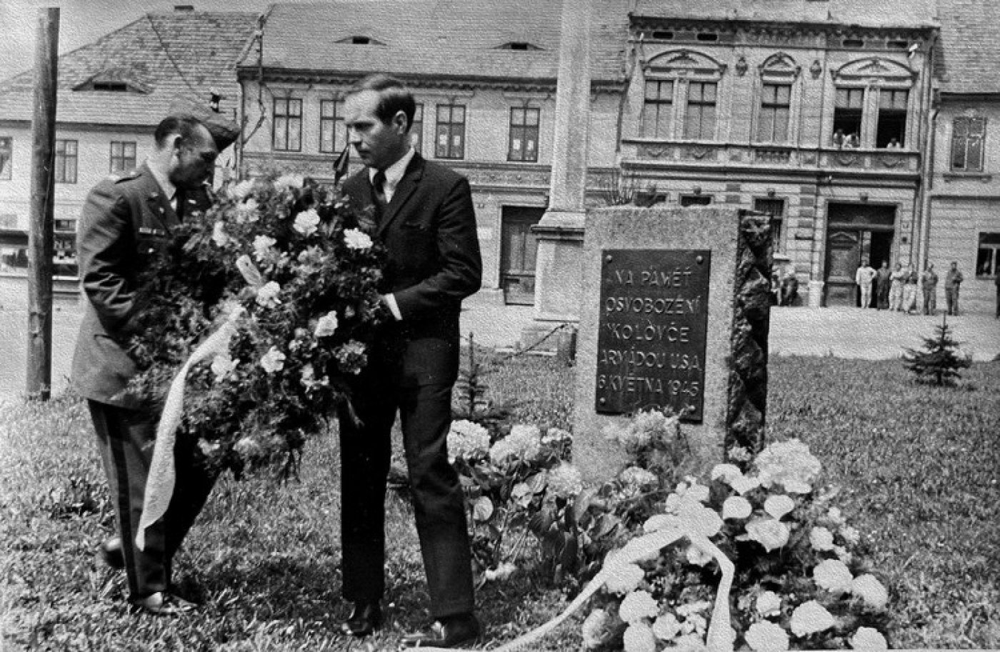 Další pamětník z Koloveče, pan Jan Kufner vzpomíná na dění v roce 1983, když Američané zavítali na Chodsko. V té době už nestál na místě původní pomník, který osvobození Kolovče armádou USA připomínal, a tak přivezli dřevěnou stoličku a na místě zrušeného památníku ji umístili i s věncem. Jenže přišel tehdejší předseda Národního výboru a vykázal je. Jeho chování Kufnera rozčílilo natolik, že mu s kamarádem před dům barvou namalovali hanlivé nápisy. „Odvezli mě do Domažlic na StB. A ve čtyři hodiny ráno řekli, že už můžu jít domů, až to všechno podepíši,“ vypráví.