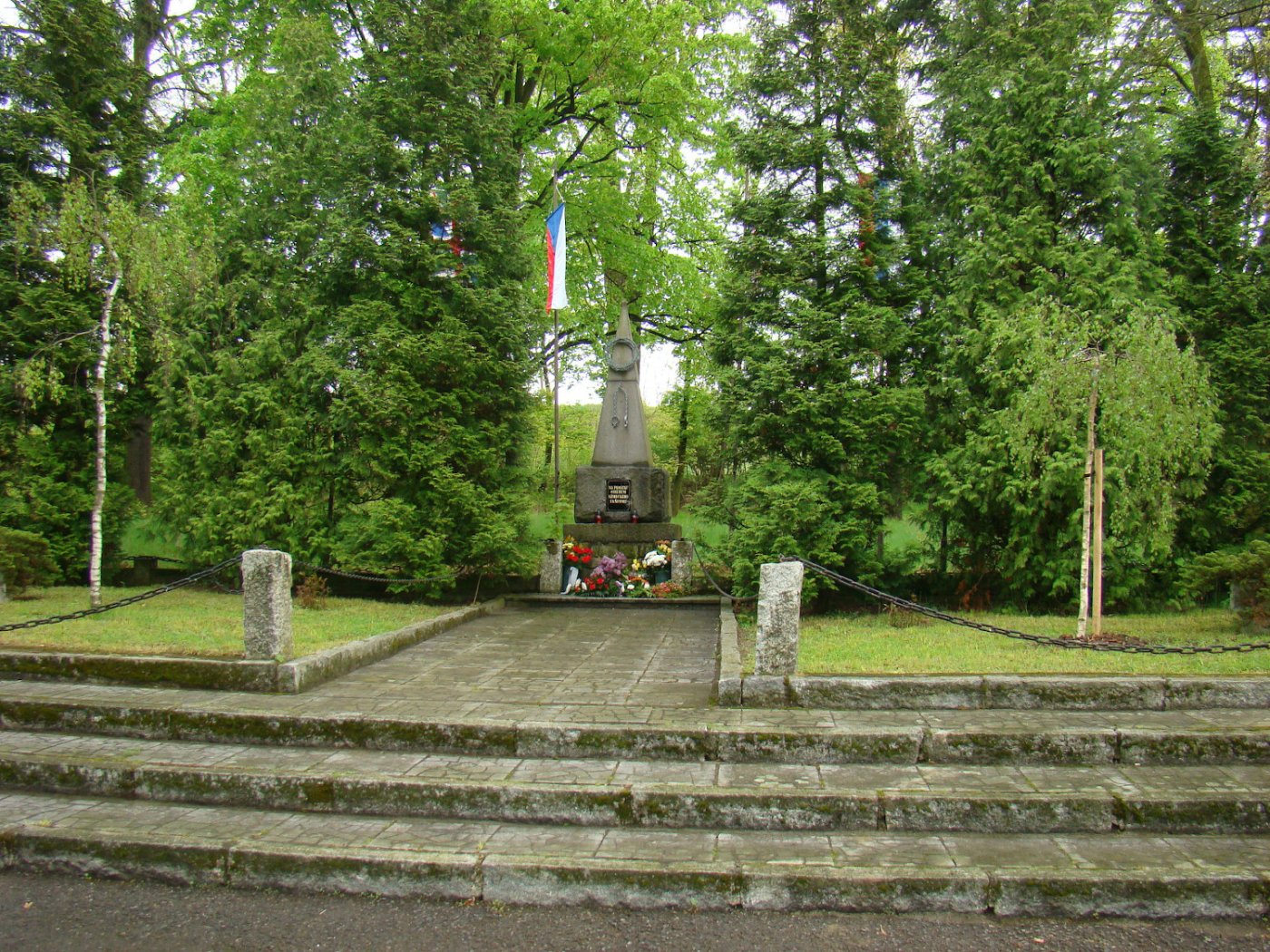 Pomník je čtyřstupňový, žulový a cca 360 cm vysoký. Spodní část podstavce je postavena z hrubě otesaných kvádrů. Další část je vyhotovena z několika velkých kvádrů. Třetí část tvoří jeden velký blok kamene a je na něm umístěna skleněná deska s nápisem. Nejvyšší část ve tvaru pravidelného čtyřbokého jehlanu o výšce cca 200 cm je vyrobena z umělého kamene a ozdobena kovovou trnovou korunou a okovy.