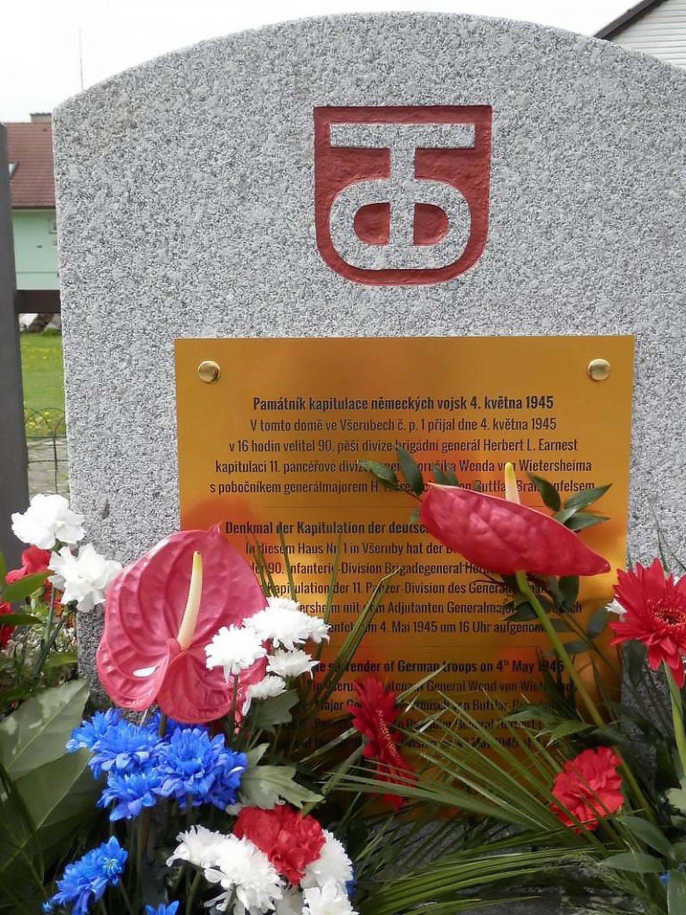 In this house No. 1 in Všeruby, general Wend von Wietersheim and commander Treusch von Buttlar-Brandenfels surrendered the 11th Panzer Division to major general Herbert L. Earnest, commander of the US 90th Infantry Division, on 4th May 1945 at 4 pm.
